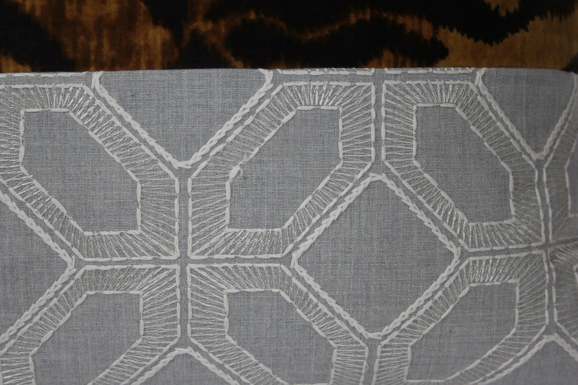 Panels of Braemore tiger velvet and embroidered grey cotton blend, a Kravet Design, backed with white linen.