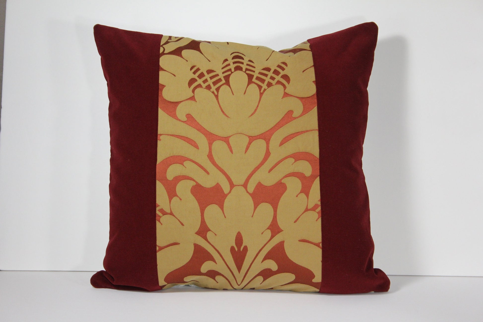 Orange Silk Damask and Red Velvet 20” panel pillow cover