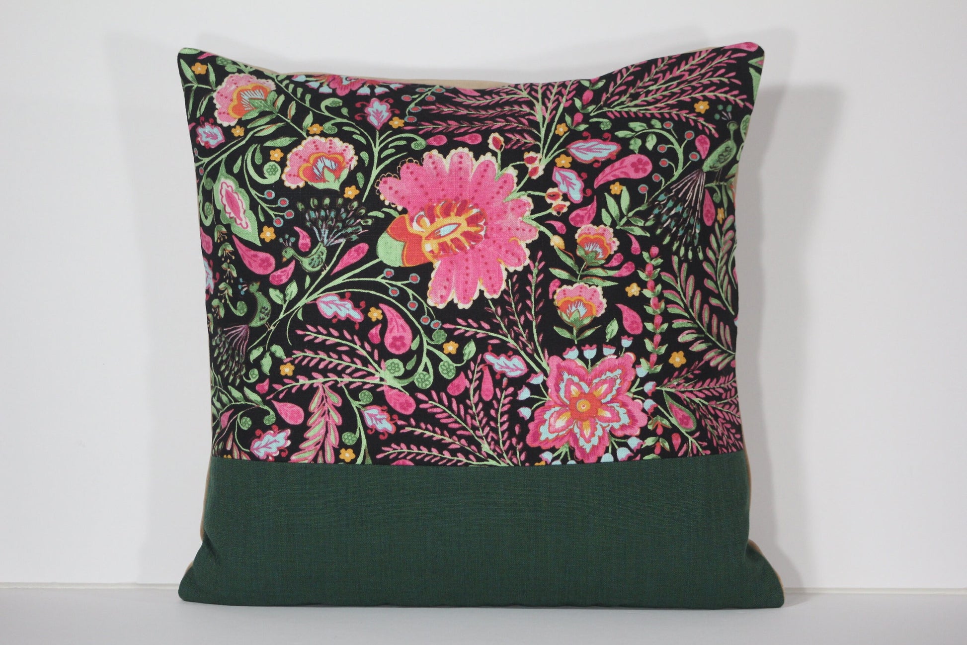 A large panel of Dena Home’s Peaceful Perch fabric is paired with a green faux linen poly blend, and backed with a subtle camel-colored velvet. With its exuberant tropical design on a black ground, Peaceful Perch delivers the touch of black every room needs, but in such a happy way! With two slightly different and unique pillow covers in this design the choice is yours. We think any child would love to have these pillows in their room, but they’d be just as nice anywhere in your home!