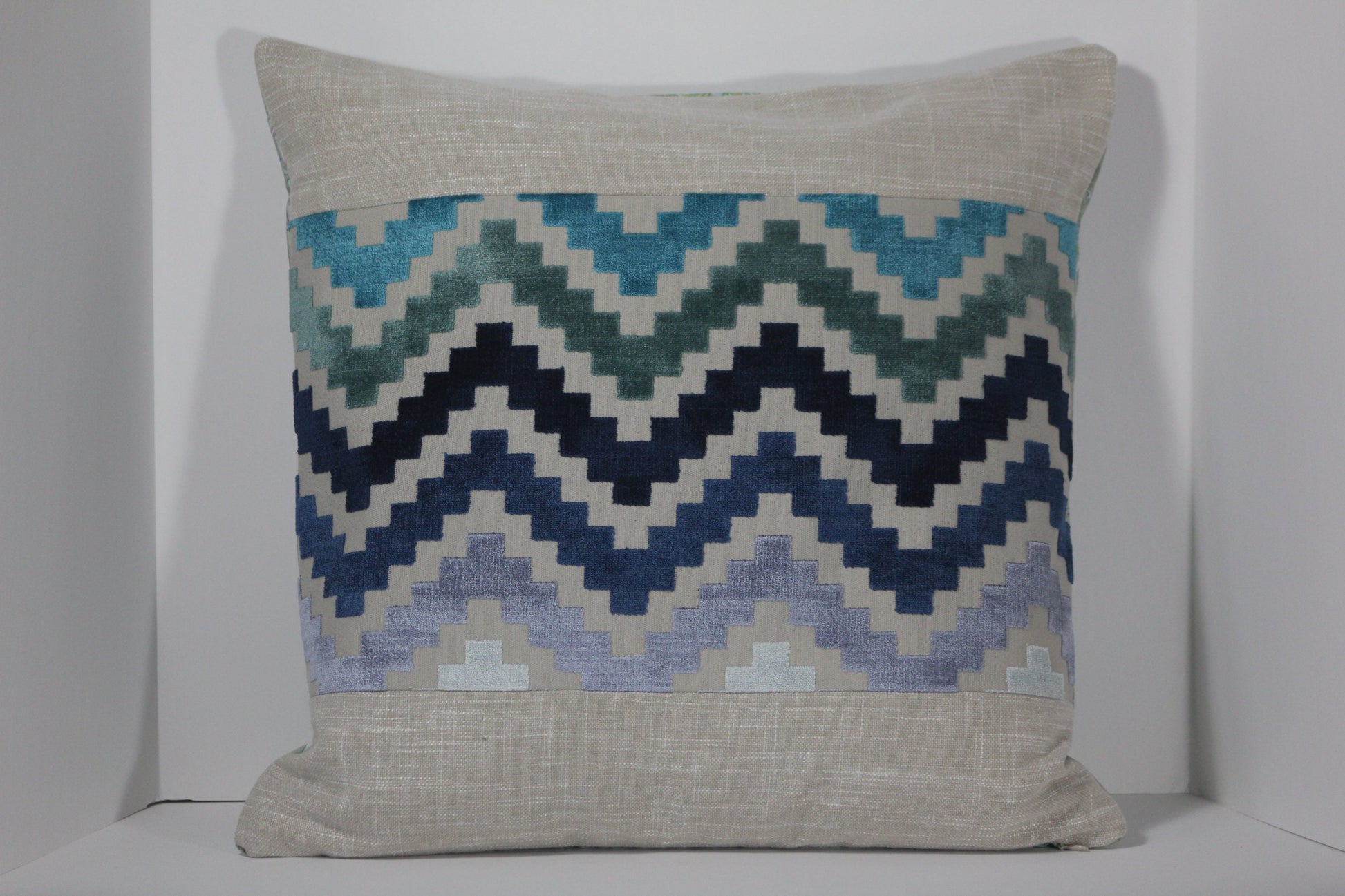 Ziggurat design blue cut velvet 20" panel pillow cover